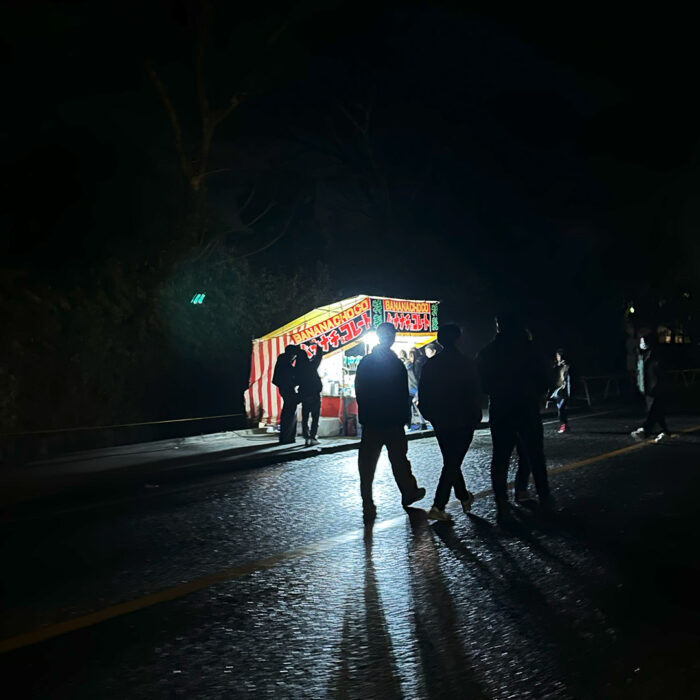 終電がなくなってしまうので、JRの最寄り駅まで車で行ってそこから電車で。ちょっと寒かった。広くて夜店がいっぱい出てて楽しかった。チョコバナナの屋台がたくさんあった。