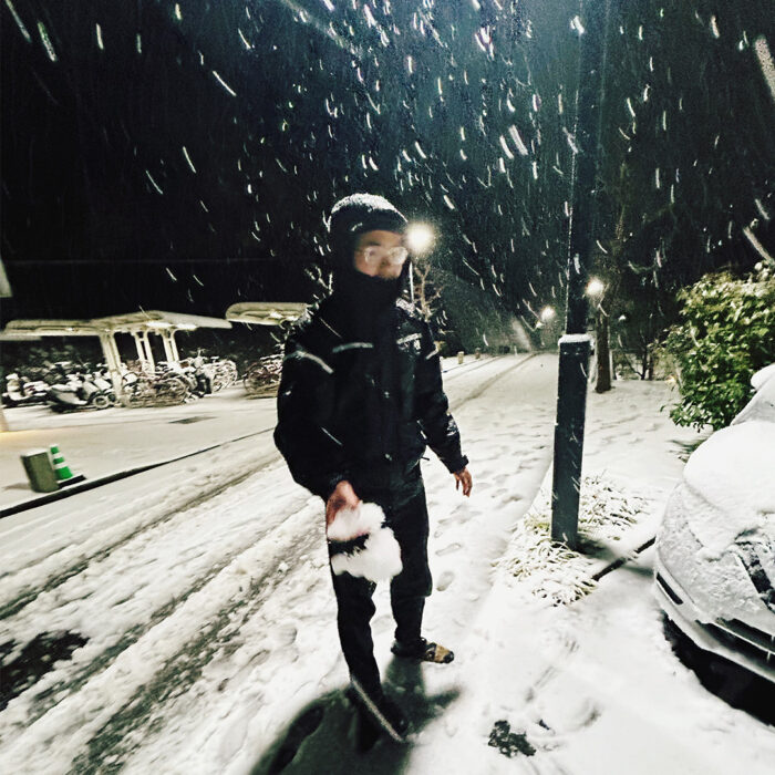 雪の中、ともろーさんが徒歩で最寄りの駅の近くまできてくれた。家までの道を歩きながらパパっと雪だるまを作って一瞬雪合戦して満足して家に帰った。