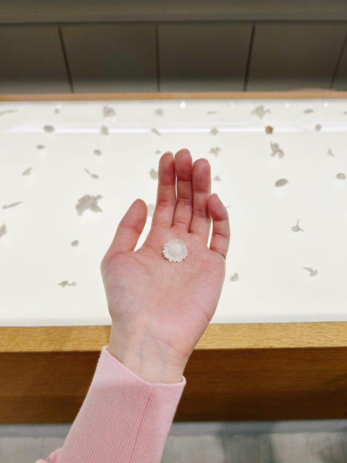 くるみさんの個展を見に伺った!お会いするのはすごく久しぶりで緊張した!この表現が合っているかわからないけど、そこ(どこか)に確かにあった命の形が永遠に続く作品がたくさん並んでいて、それぞれの植物ごとの生きていた時間を感じた 展示されていたライティングデスクの明かりが心地よかったです。